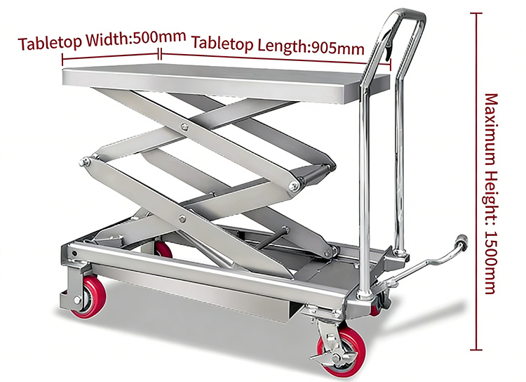 A Hebei Shengyu 350 kg-os rozsdamentes acél hidraulikus emelőplatformos targonca rozsdamentes acélból készült, és általános korrózió- és rozsdaállóságot, rugalmasságot, biztonságot, szilárdságot és tartósságot kínál.